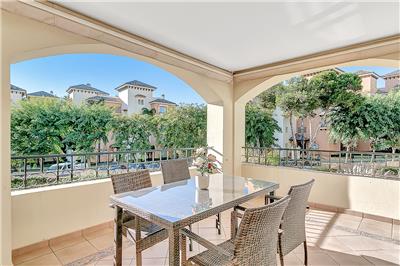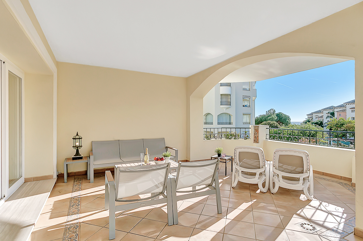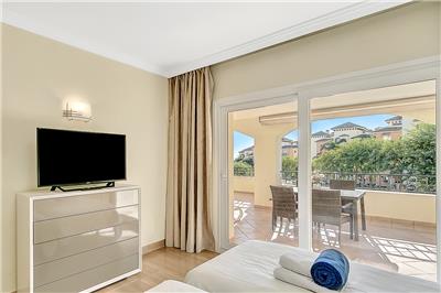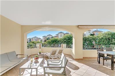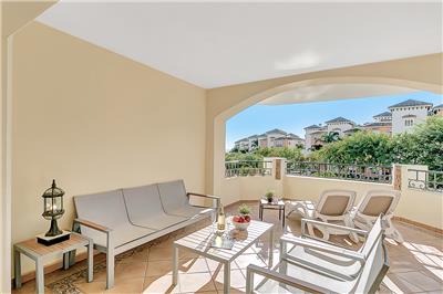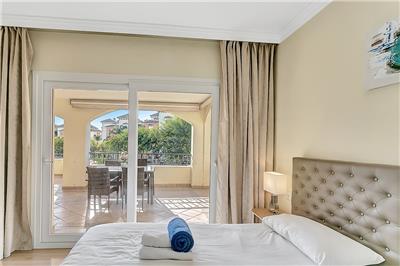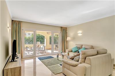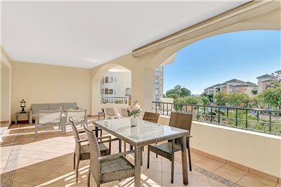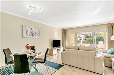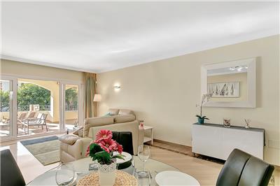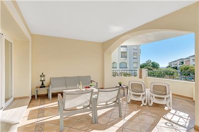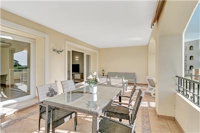 - Elegant Living Space: The apartment is well-maintained and features a well-sized and comfortable living and dining area. This space opens up to the south-west facing terrace, which boasts a lovely patio set and a separate dining table with chairs.