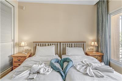 - Two Bedrooms with Ensuite Bathrooms: Both bedrooms, one with a double bed and the other with twin beds, come with ensuite bathrooms for your ultimate comfort.